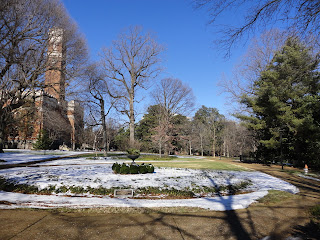 There are LOTS of crows on Vanderbilt's campus. You see them every day flying around. You see crows as you see other birds, for example cardinals or blue jays even though there are more of the former. The strange thing starts every day around sunset time. Hundreds of crows get together and roam around in circles making the profusely black dotted sky look eerie. After the sun goes down, a few still circle around, but most gather to sleep at the top of a very small number of leafless trees in the northernmost tip of campus. Here is a close-up of the picture above.